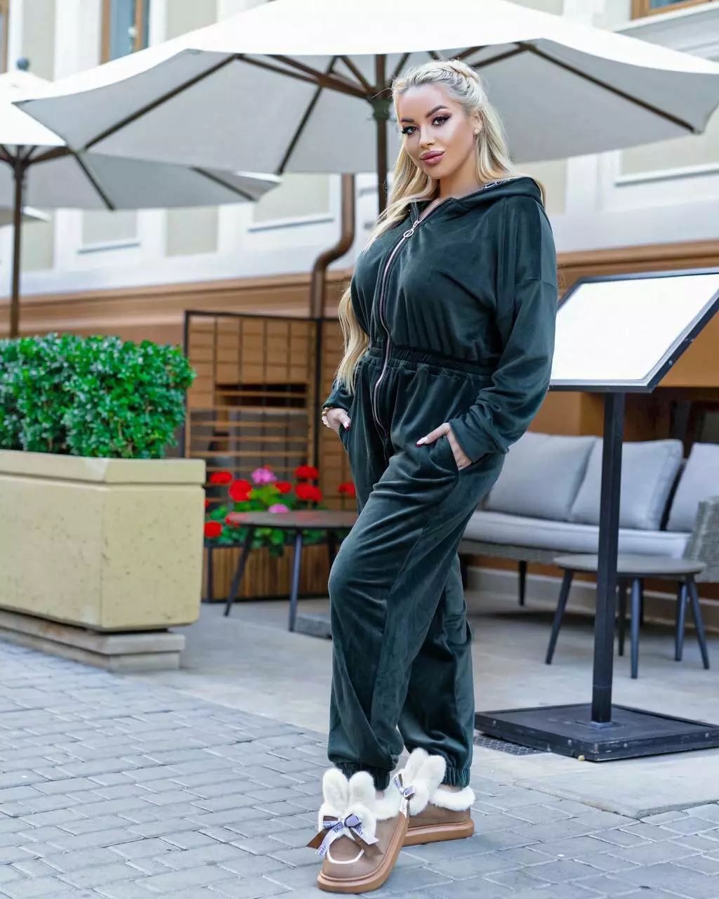 Комбінезон з капюшоном і з карманами на молніі